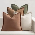 Be the first to review “Set of 4 Neutral Linen Fringe Throw Pillows, Soft Rustic Cushions for Sofa Living Room Decor, Beige/Brown/Green”